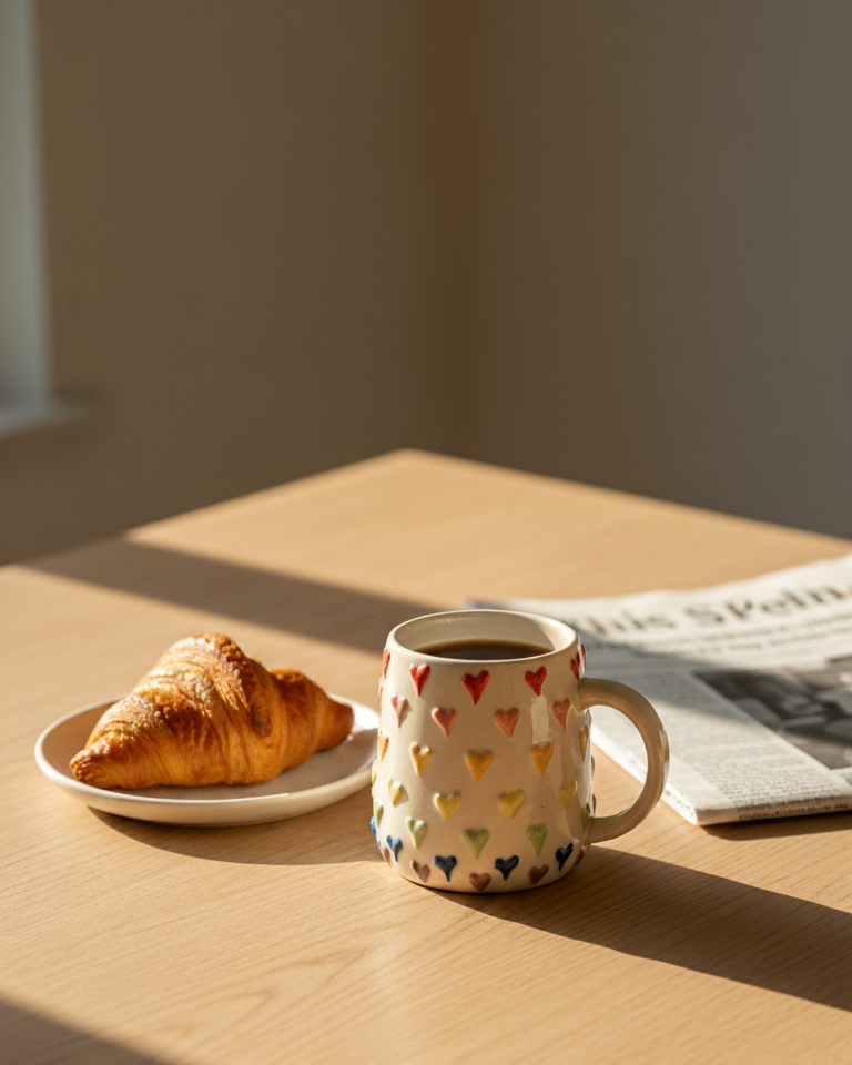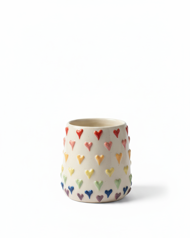 Sprinkled with multicolored hearts, this sturdy ceramic mug is a daily reminder to embrace joy and inclusivity. Ideal for Pride celebrations, friendship gifts, or anyone who loves a pop of color.
