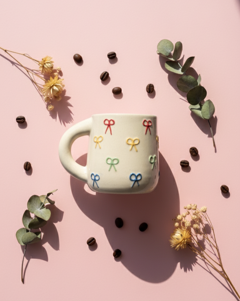 Featuring a playful ribbon motif in bright rainbow hues, this ceramic cup spreads positivity with every pour—perfect for birthdays, Pride gifting, or anyone who loves a cheerful start to the day.